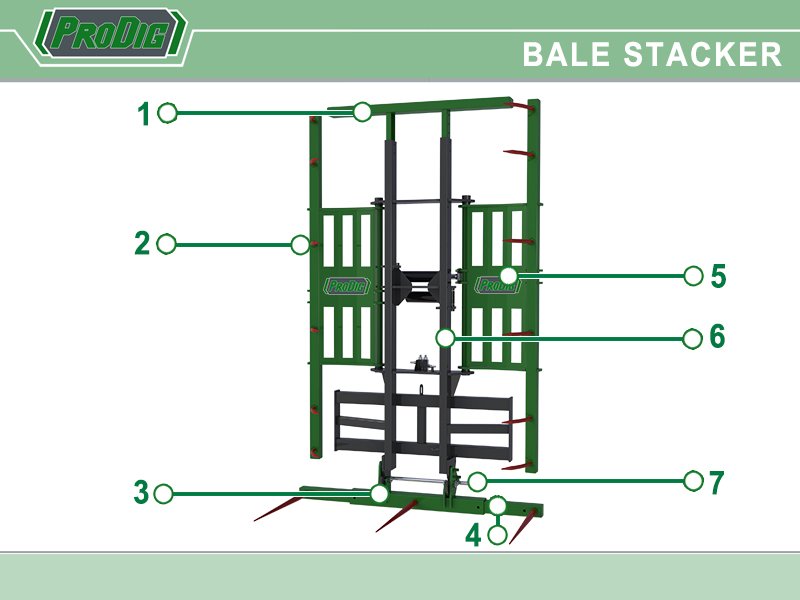 The Prodig Bale Stacker is an attachment designed to increase efficiency when handling large numbers of round and square bales with units available to suit Tractor Loader or Tele-Handler/Articulated Loader.